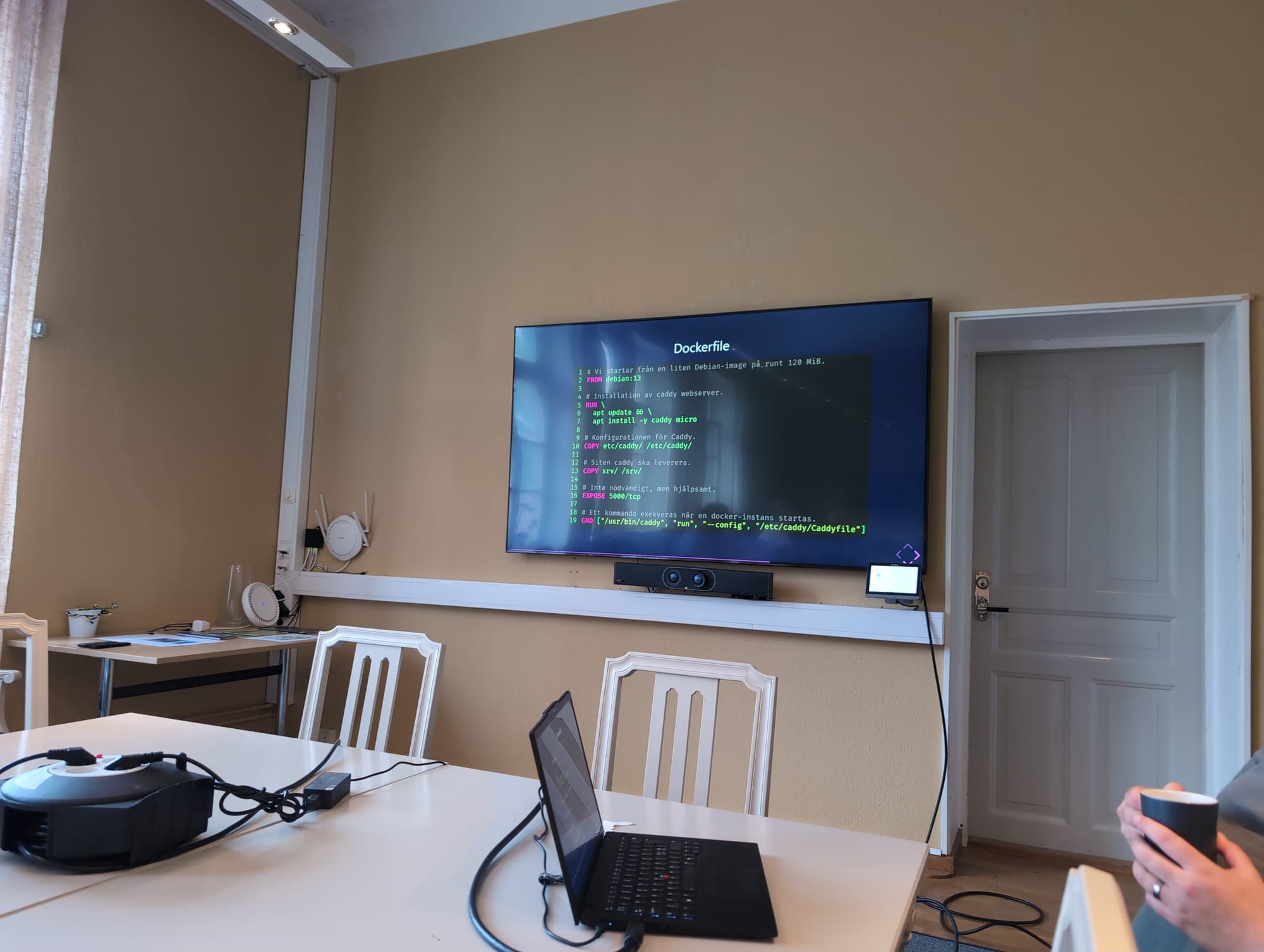 Vi var till antalet sju glada deltagare som träffade i Gibon Uddevallas lokaler i Uddevalla. Dagen till ära hade Magnus en genomgång i grunderna i Docker.