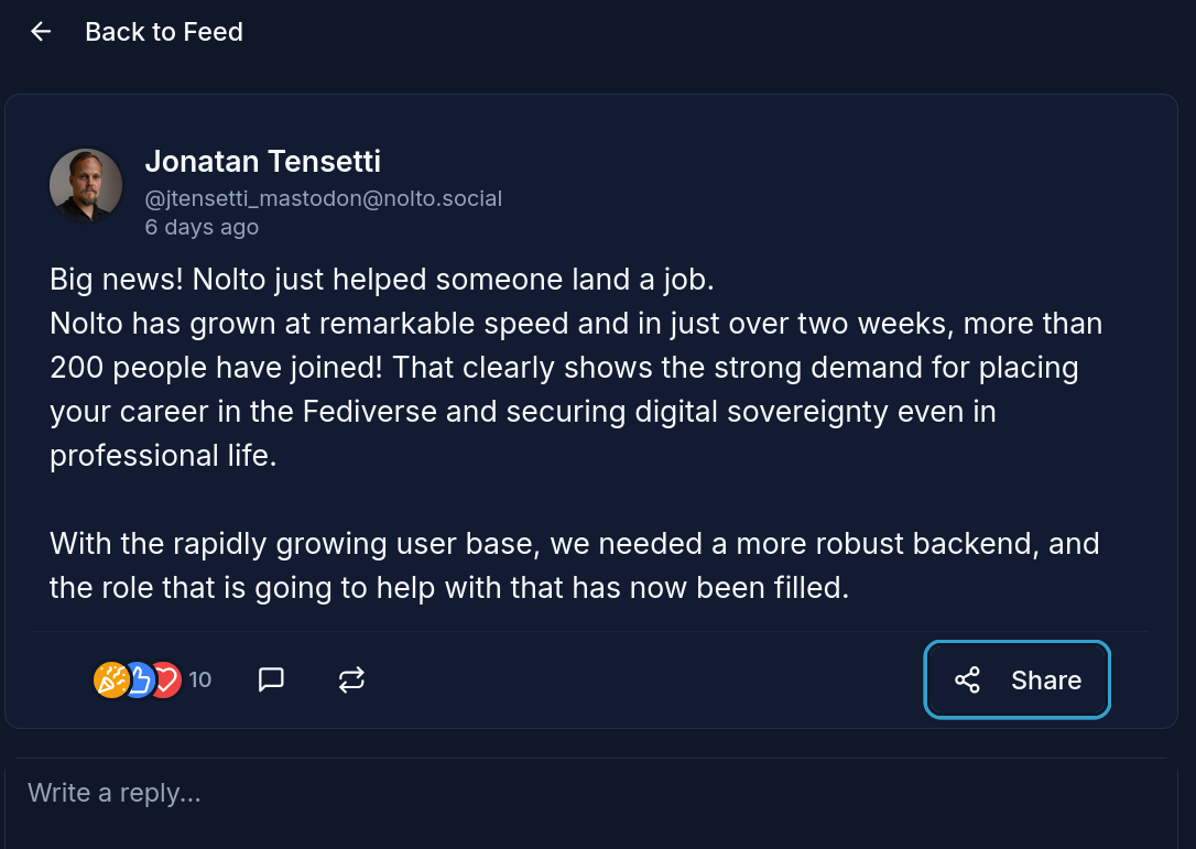 Nu har det kommit till vår kännedom att Nolto förmedlat ett jobb någon behövande.